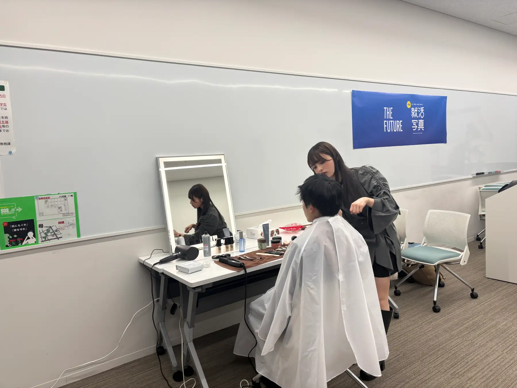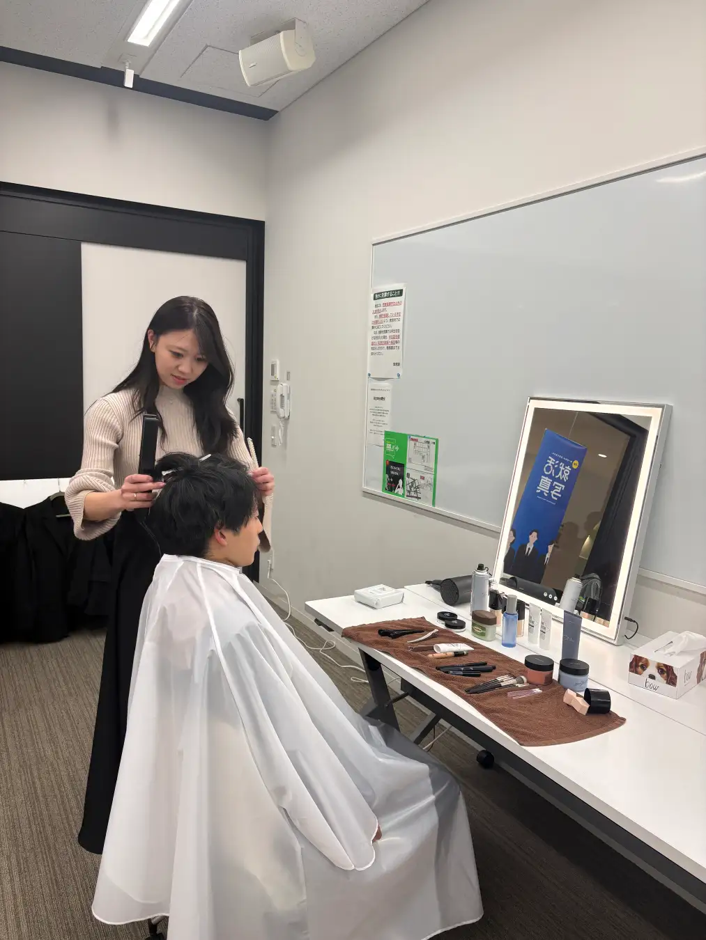 本イベントでは、就職活動における第一印象の重要性が高まる中、就活生の「見た目不安」を解消する取り組みとして、大学内でプロのヘアメイク付き証明写真撮影イベントを実施。メイクのレクチャーと撮影を無料で提供し、身だしなみ教育の新しい形として学生の就活準備を支援しました。
