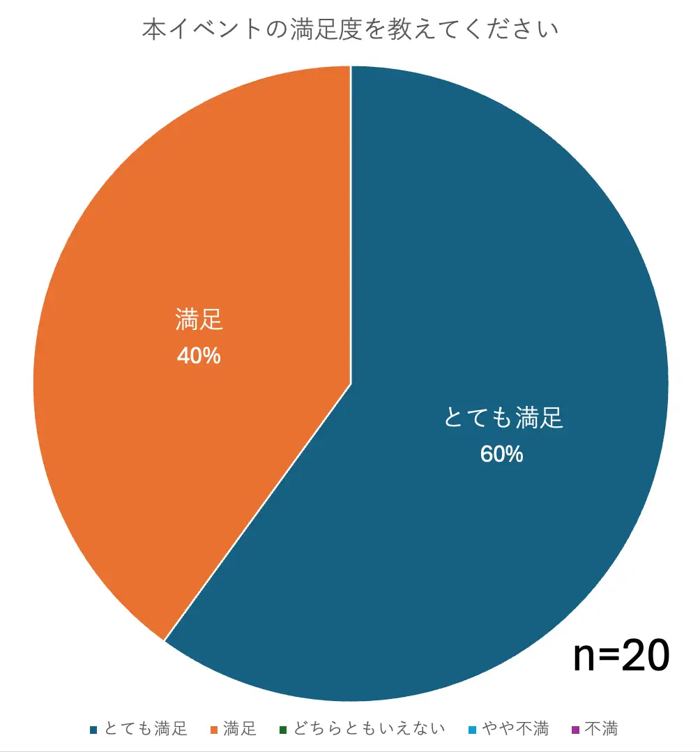 参加者の全員が「満足」と回答し、満足度は100%という結果となりました。